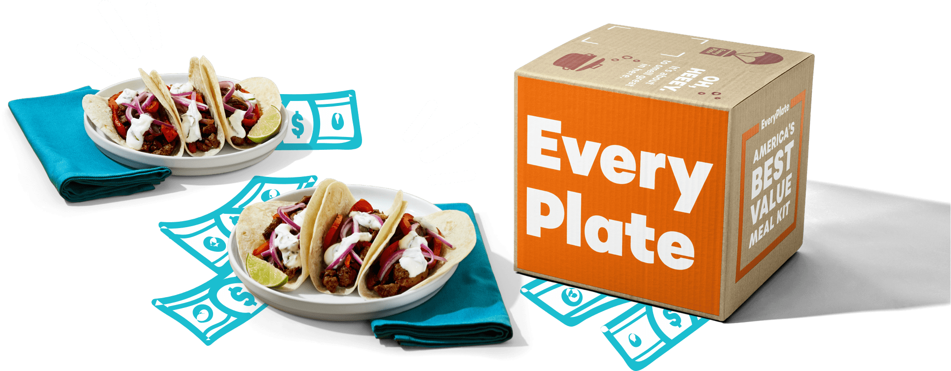 *EveryPlate Offer: ‘$1.99/meal' offer is based on 66% off your first box and expires 21 days after the voucher is attached to an account at 11:59 PM ET. Shipping fee applies on all deliveries. Not valid on premiums, meal upgrades, add-ons, taxes or shipping fees. May not be combined with gift cards or any other promotion. No cash value. Void outside the U.S. and where prohibited. Offer cannot be sold or otherwise bartered. EveryPlate has the right to end or modify any offer at any time. Additional restrictions may apply. See https://www.everyplate.com/terms for more details.