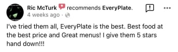 While meal kits are normally associated with luxury and a premium price tag, with EveryPlate it’s not the case. Even at full price, dinners are only $5.99 each. Yep, that’s up to 47% cheaper than other leading meal kit companies*.